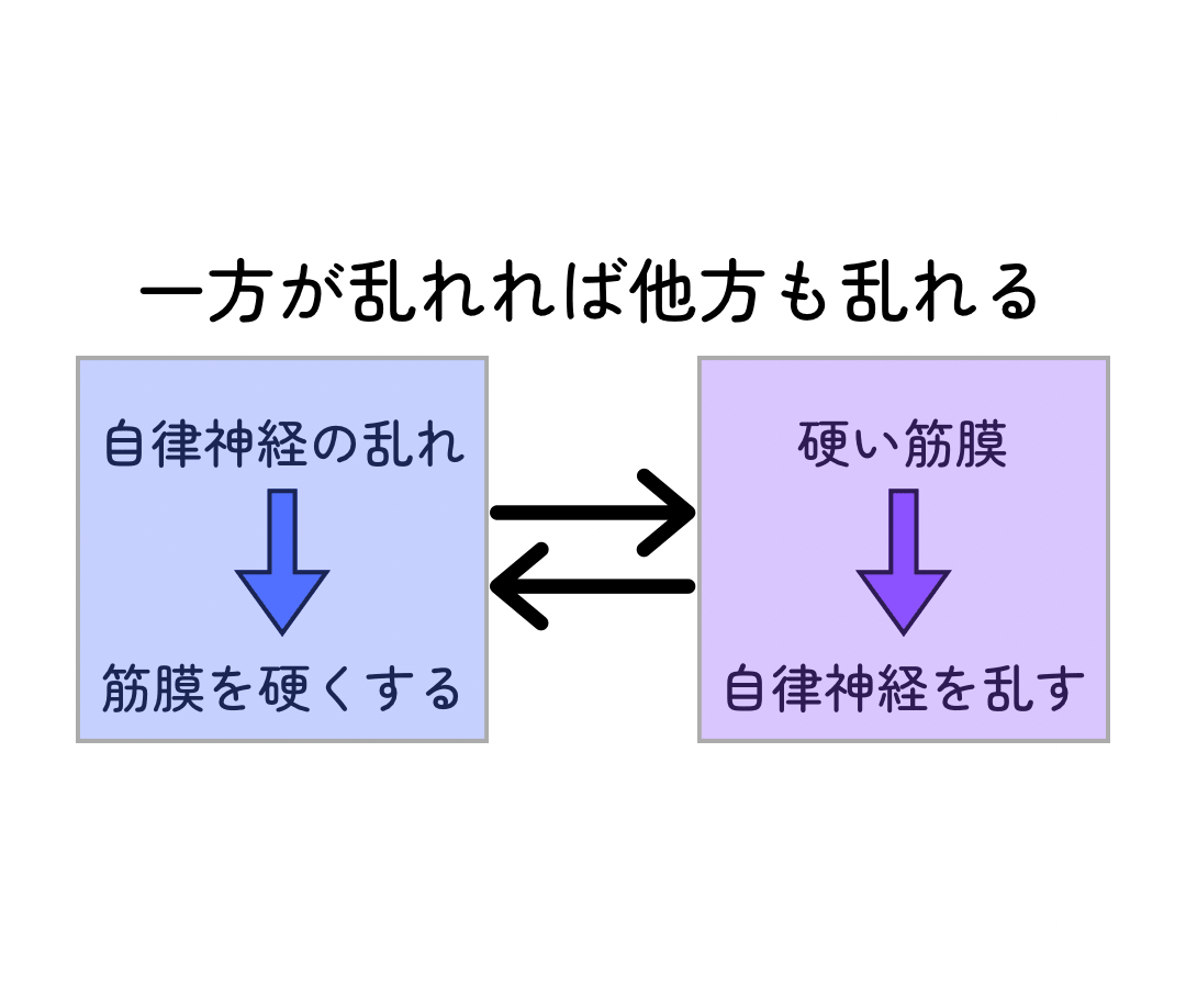 自律神経の乱れ → 筋膜の硬化 → 誤った緊張シグナル → 自律神経の乱れ……